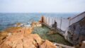 波の高い日には、海しぶきが湯船の近くまで届くことも。