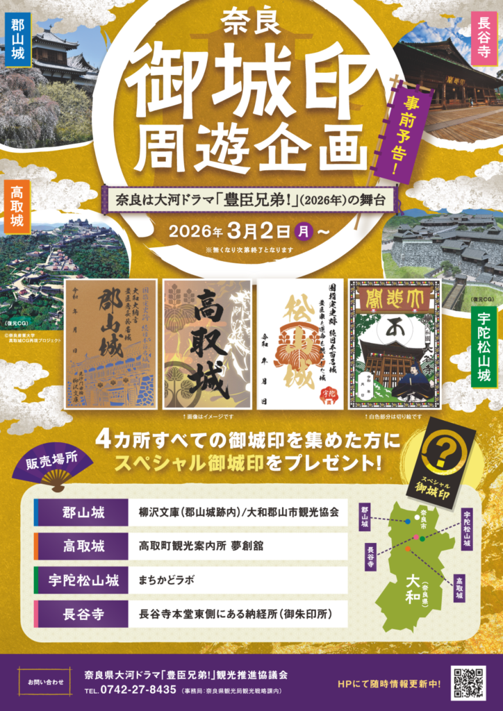 今なら奈良県の城や豊臣秀長の縁あるスポットを回って、特別御城印をゲットできるイベントがあります!